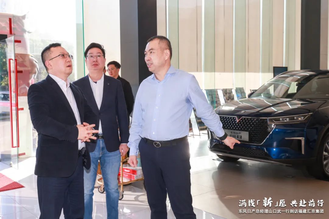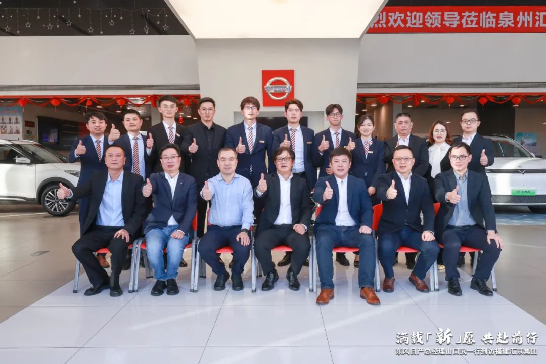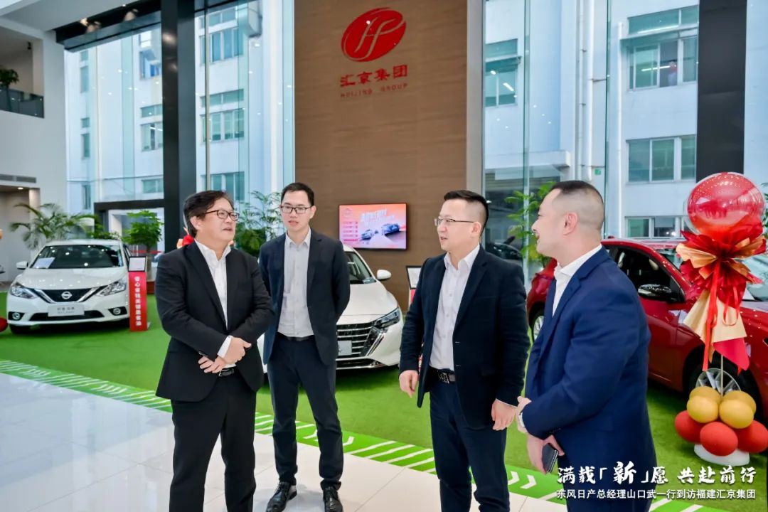 2023年(nián)12月28日-29日,東風汽車有限公司副總裁/東風日産乘用車公司總經理(lǐ)山口武、東風日産汽車銷售有限公司總經理(lǐ)劉新宇、東風日産汽車銷售有限公司銷售部副部長(cháng)楊峰、東風日産經營管理(lǐ)總部總經理(lǐ)辦公室翻譯科副科長(cháng)張傑及華東一(yī)區區域領導一(yī)行到訪福建彙京集團走訪交流。彙京集團董事長(cháng)林峻霆、副董事長(cháng)魏家建、CEO林振華、福州區域總監林義恩、泉州區域總監餘國(guó)及泉州各店總經理(lǐ)等陪同調研!